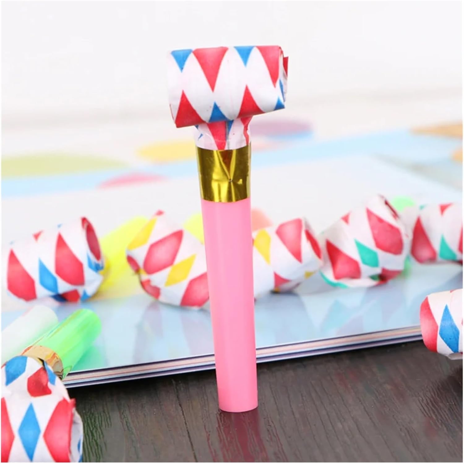 How To Use: Hold The Nozzle And Gently Blow To Unfold The Paper Roll; Release The Nozzle, And The Roll Will Automatically Retract. Please Store Flat In A Dry Place To Maintain The Integrity Of The PaperProduct Features- Color: Random color- Material: Plastic- Size: 6 x 0.8 x 0.8 cm- Quantity: 300 piecesNote:1. The real color of the item may be slightly different from the pictures shown on website caused by many factors such as brightness of your monitor and light brightness.2. Please allow slight manual measurement deviation for the data.