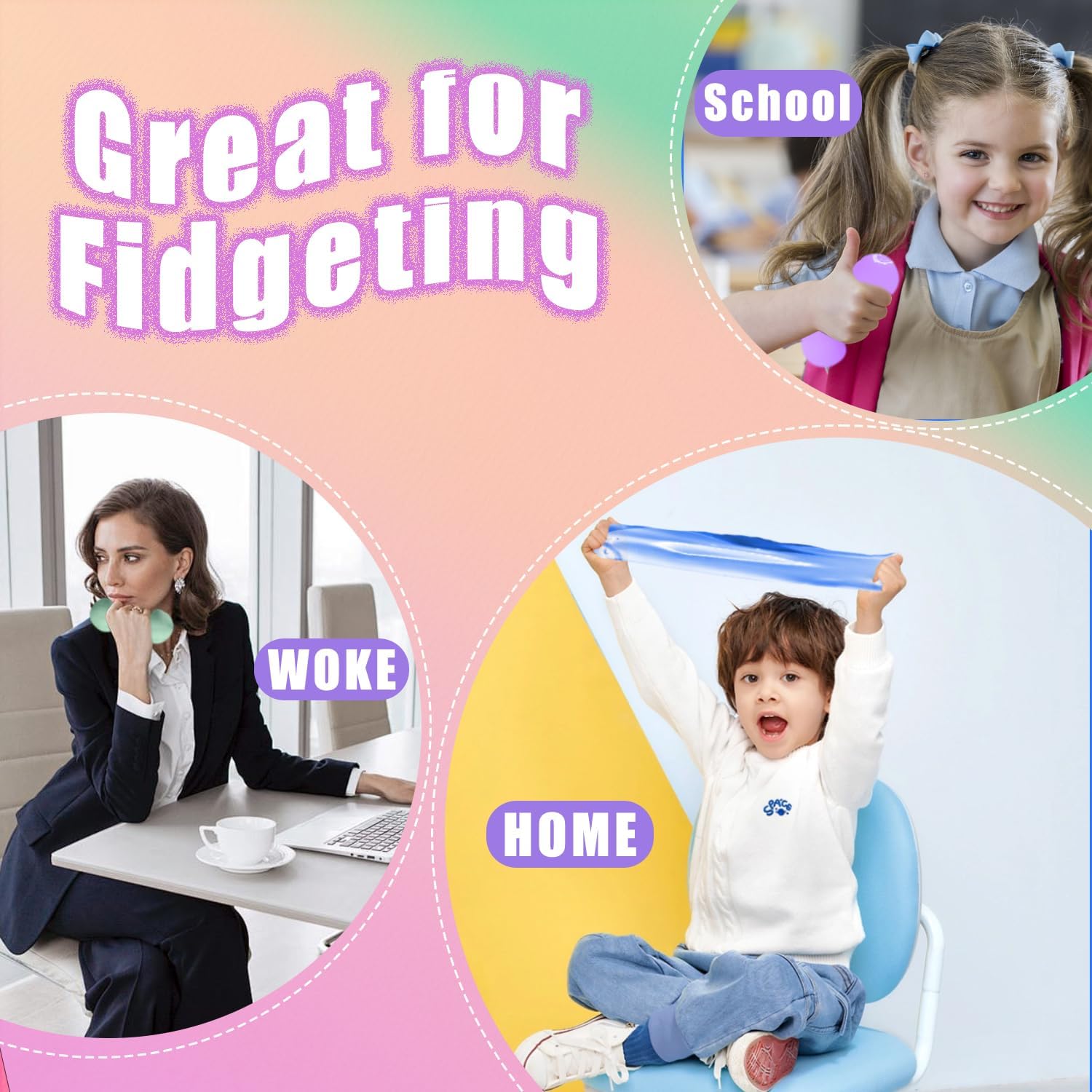 | Included Components | 1 Transparent blue squishy cube, 1 Transparent green squishy cube, 1 Transparent pink squishy cube, 1 Transparent purple squishy cube |