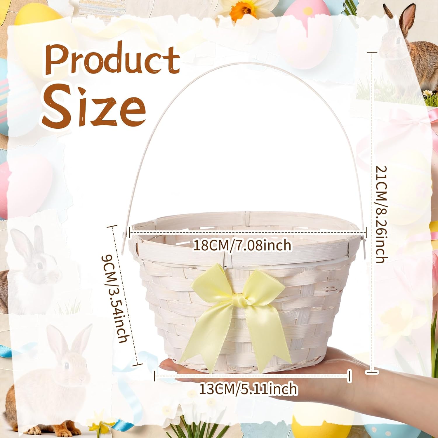 Features: Easy to hold: The Easter basket has curved handles and smooth edges for easy grip and carrying. The handles are movable, allowing you to stack and store the baskets Easter decoration: Easter baskets can be filled with various Easter decorations. Use exquisite bamboo baskets to decorate your Easter party and make the celebration more exciting. Specifications: Material: bamboo Package includes: 6 x Easter woven baskets Notes: Due to manual measurement, there may be slight errors in size. Due to different screen displays, colors may vary slightly.