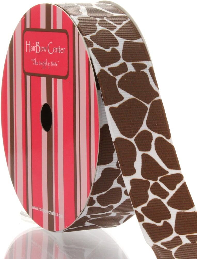 7/8" White grosgrain ribbon with a Turftan Giraffe pattern. Grosgrain ribbon can be used for a large variety of craft projects including hair-bows, scrap-booking, sewing, hanging pictures, key fobs, baby pacifier clips, and many more creative uses.