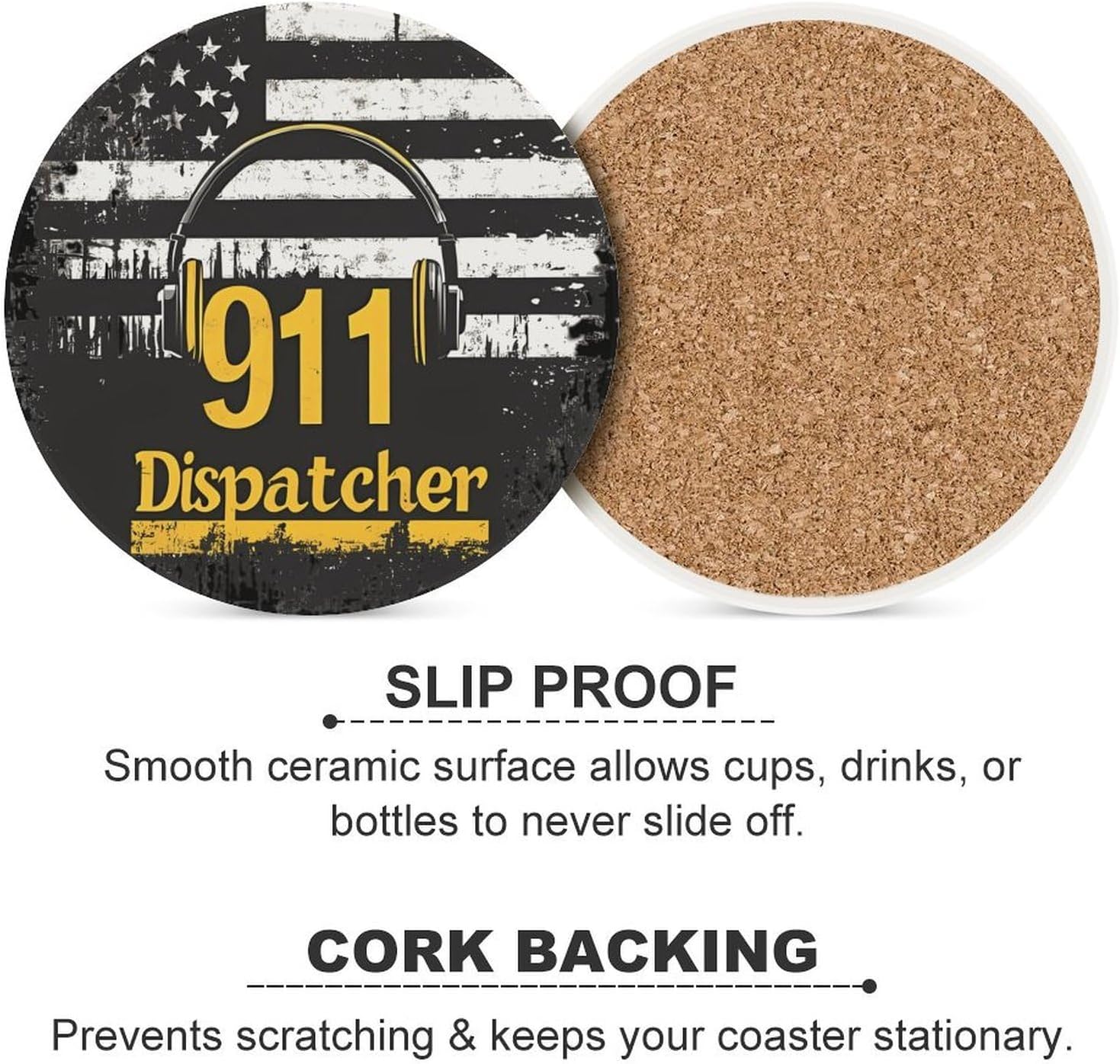Cute Printed Round Drinks Absorbent Ceramic Coaster with Cork Base Suitable for Kinds of Mugs, Cups, Prevent Tabletop Wear And Scratches, and is Easy to Clean