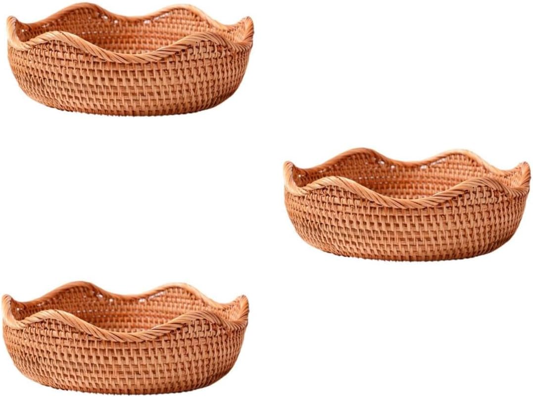 Package Include 3 x Basket Features -Color: Brown Bread Serving Basket -Size: 23.00X23.00X8.00cm/9.04X9.04X3.14in Round Bread Basket -Material: Rattan Rattan Serving Basket - rattan material, no harm and odorless Rattan Food Basket. -Fashion appearance design, can be placed at home for retro style decoration Home Bread Basket. -Not only can be used as a storage tray, but also as a furnishing Fruit Rattan Basket. -The design is impressive and beautifully designed Dough Basket. - and special shape design with rattan material Food Rattan Basket.Goods DescriptionDough Basket Bread bowl is capable of proving overnight in the fridge with a tightly cover bag.Rattan Serving Basket This bread basket is made of rattan material, works well with any recipe.Vegetables Basket We are committed to offer our customers with the quality products and great customer support