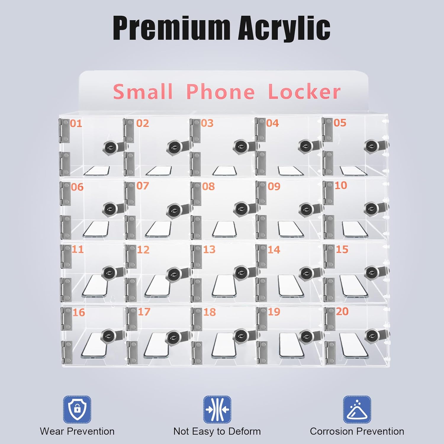 | Included Components | 1* Clear Cell Phone Locker, 20 Set* Keys, 20* Coils |