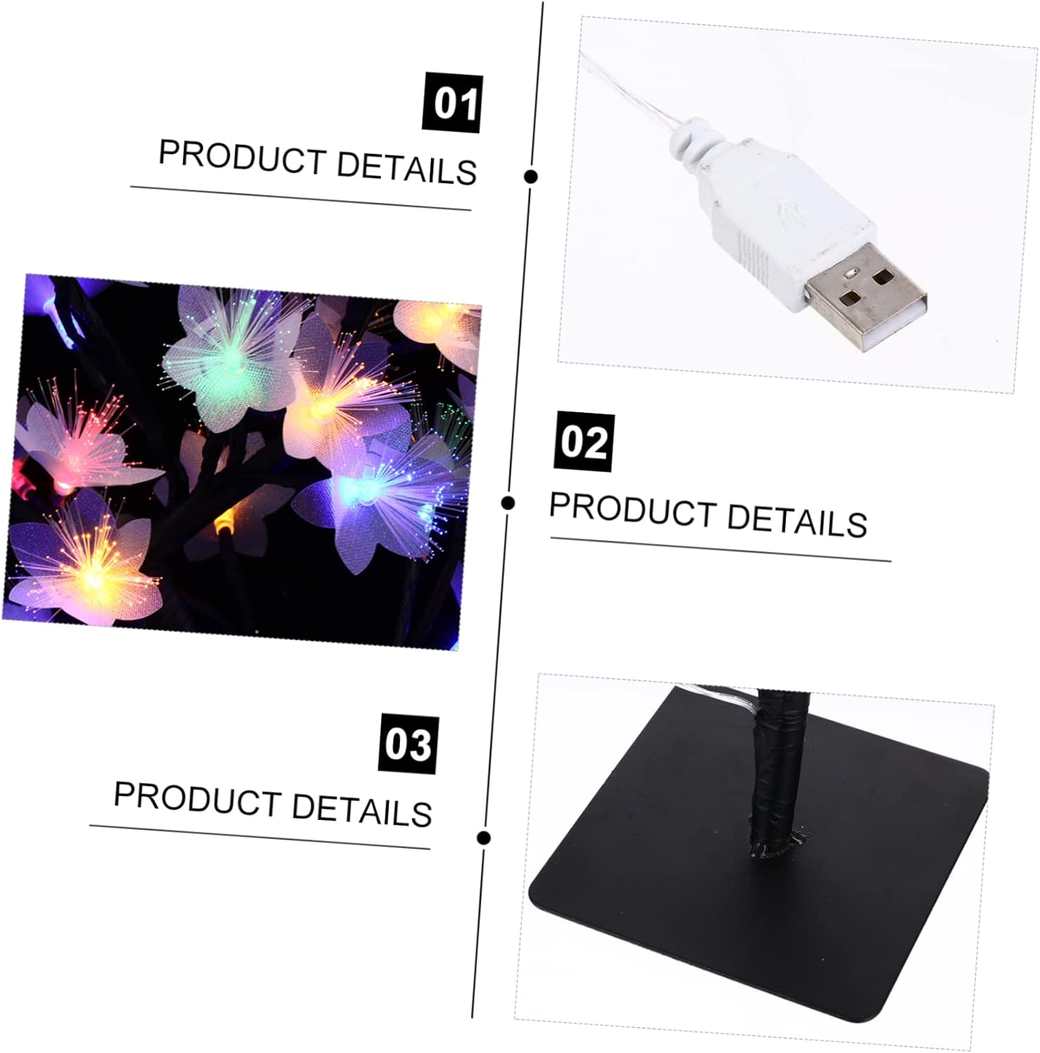 Package Include 1 Light(without USB cable) Characteristics -Color: Assorted color Desktop Tree Light. -Size: About 36x18x17cm/14.15x7.07x6.68 inch Tabletop Tree Light. -Material: Plastic Tree Light. -When you put this lamp on a table, desk, shelf, it is the accessory for your home Tree Lamp. -The branches can be adjusted. You can bend branches and trees into any shape according to your preference. Create a unique tree light for yourself Artificial Tree LED Lamp. - kindergarten, office and bedroom, wedding parties, Christmas, Halloween, Easter Artificial Tree Light. -The button can change the color of the romantic tree light, which is very easy to operate Tabletop Light. -Powered by USB, it runs through a USB charger or mobile power instead of a battery, so there is no waste of replacing the battery LED Tree Light.Goods InformationTabletop Tree Light Are you looking for something special for your bedroom? How about these artificial tree LED lights? They will make your home full of warmth atmosphere.LED Tabletop Tree Light Small in size, lightweight, they will create joyful atmosphere to your party night.Artificial Tree LED Lamp materials making, tree shape, decoration effect