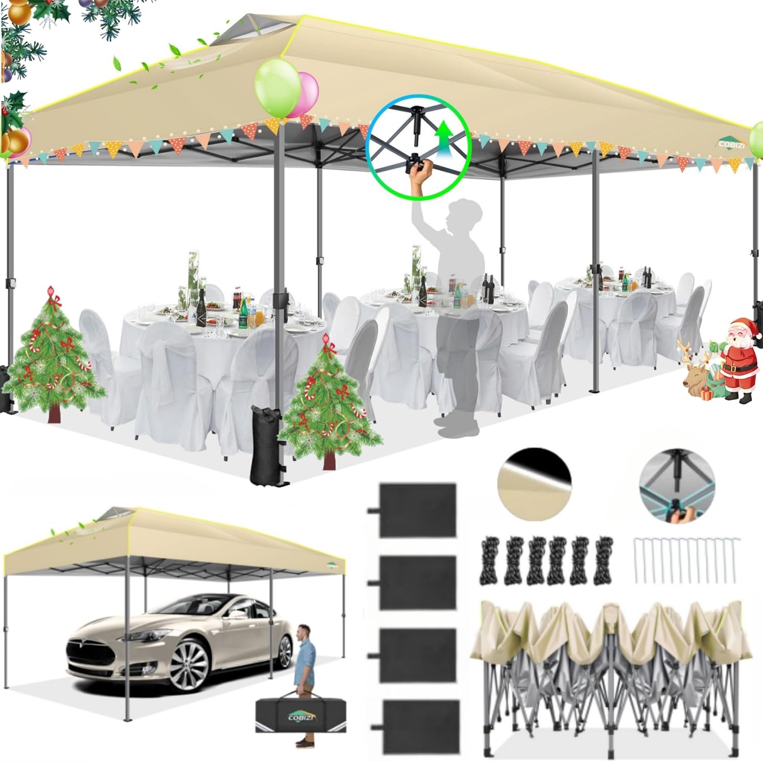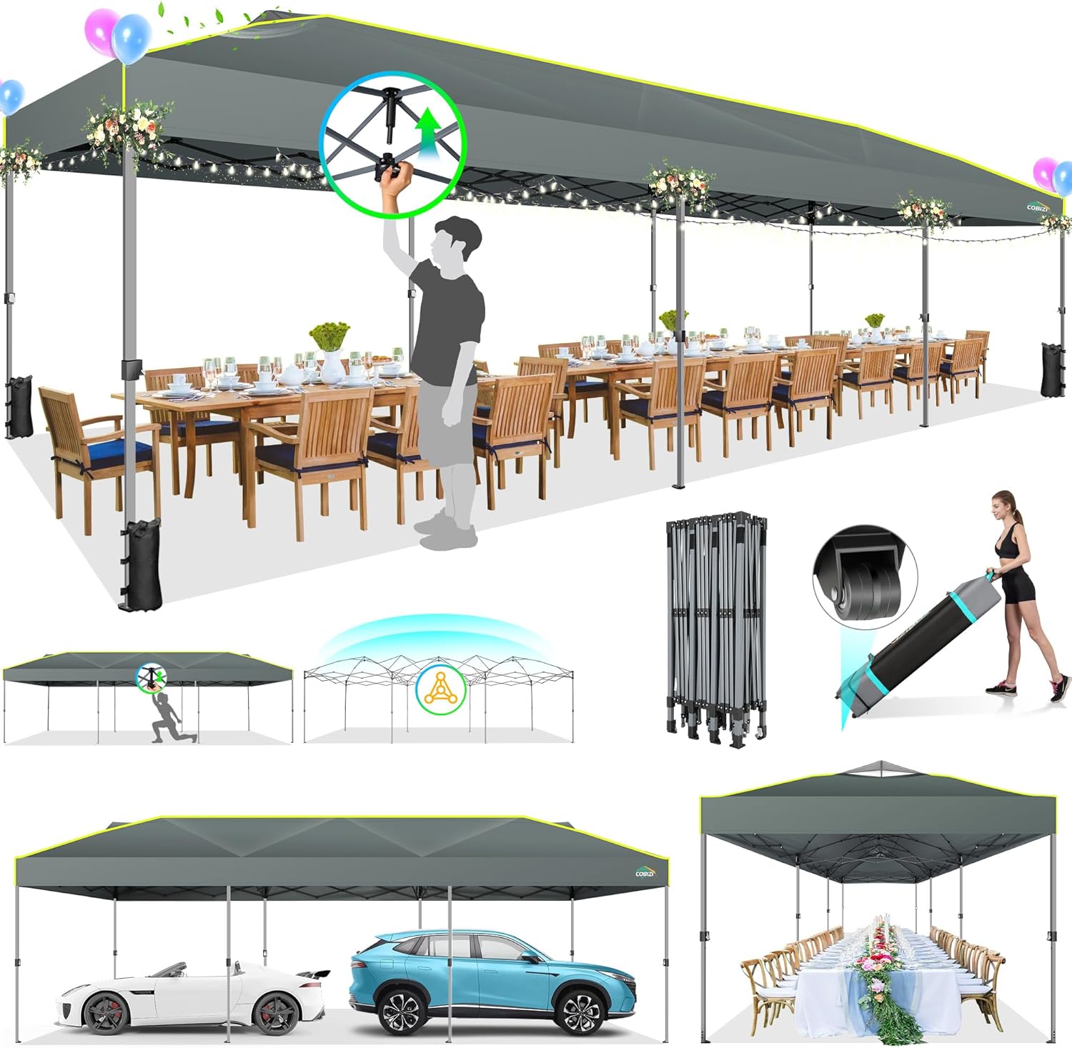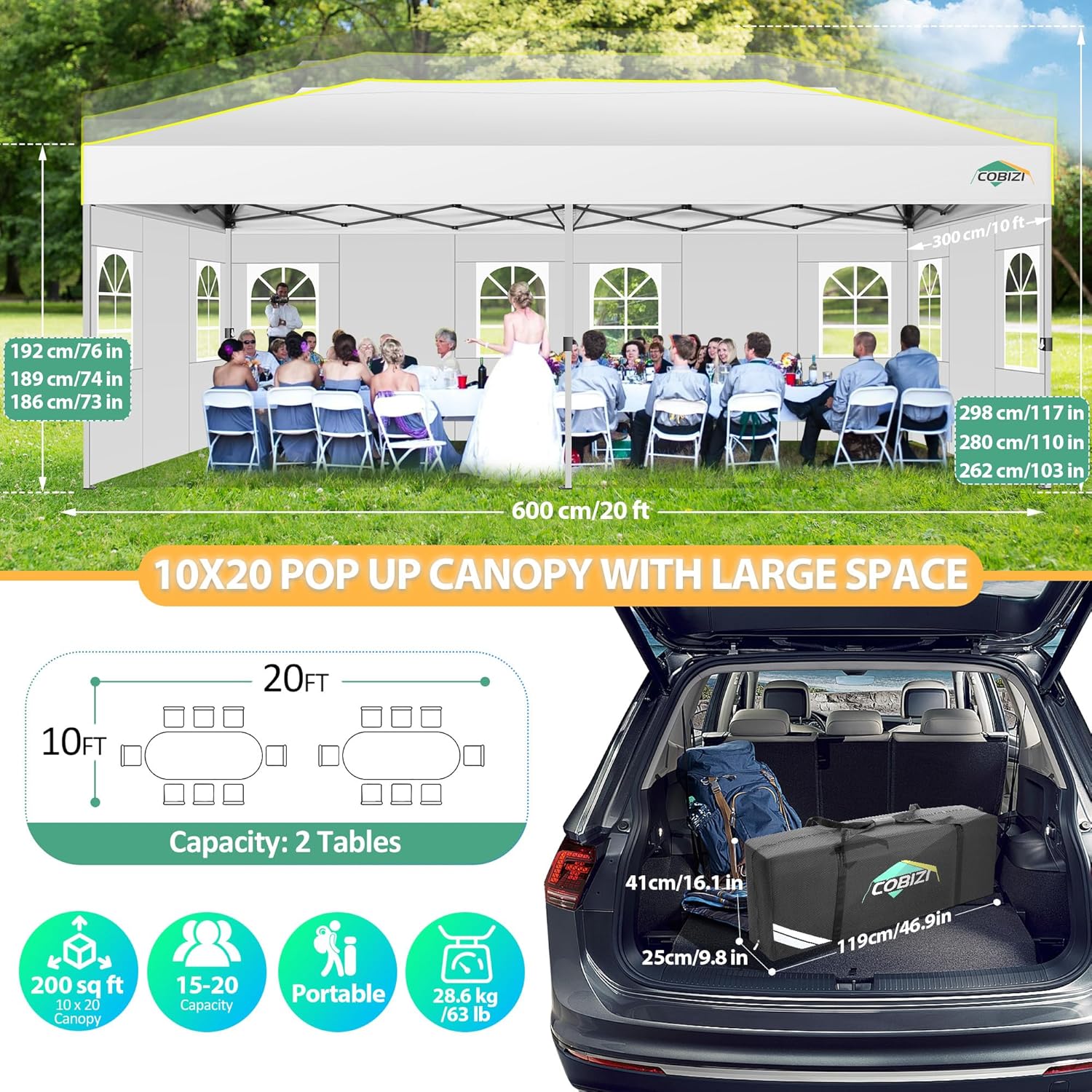 | Manufacturer Warranty Description | 10x20 instant commercial pop up canopy is NOT suitable as a permanent structure. Heavy rain and wind build up on roof and cause leaks or damage to structure. Please ask us for help if re is any after-sales problem |