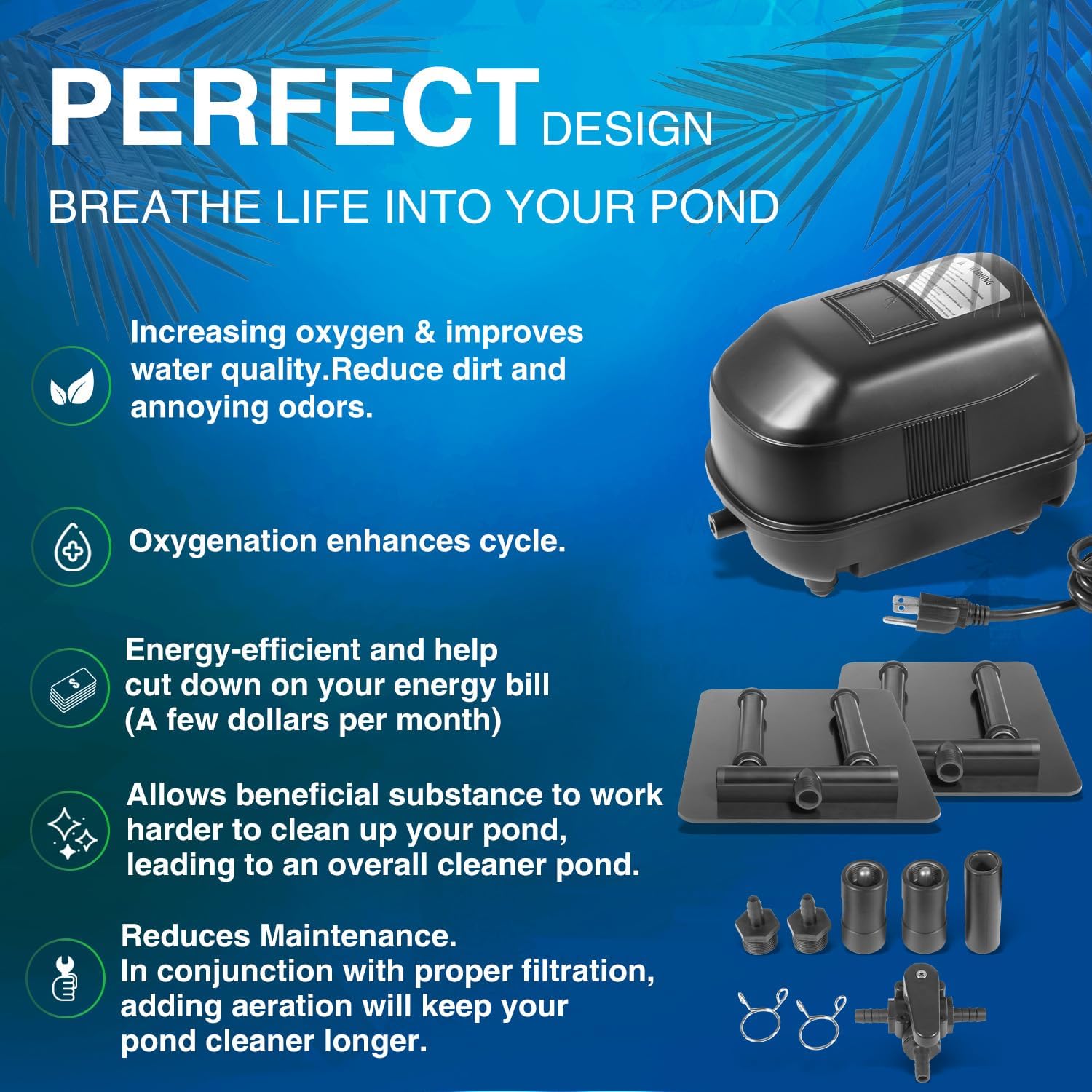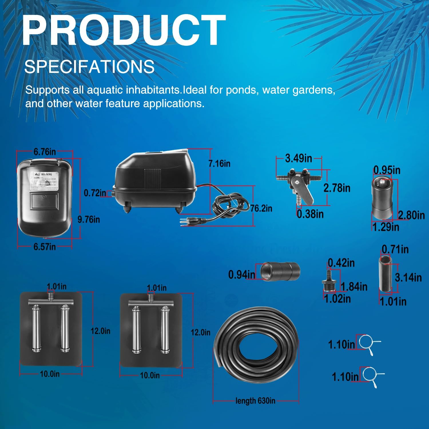 | Included Components | Complete Pond Aeration Kit |