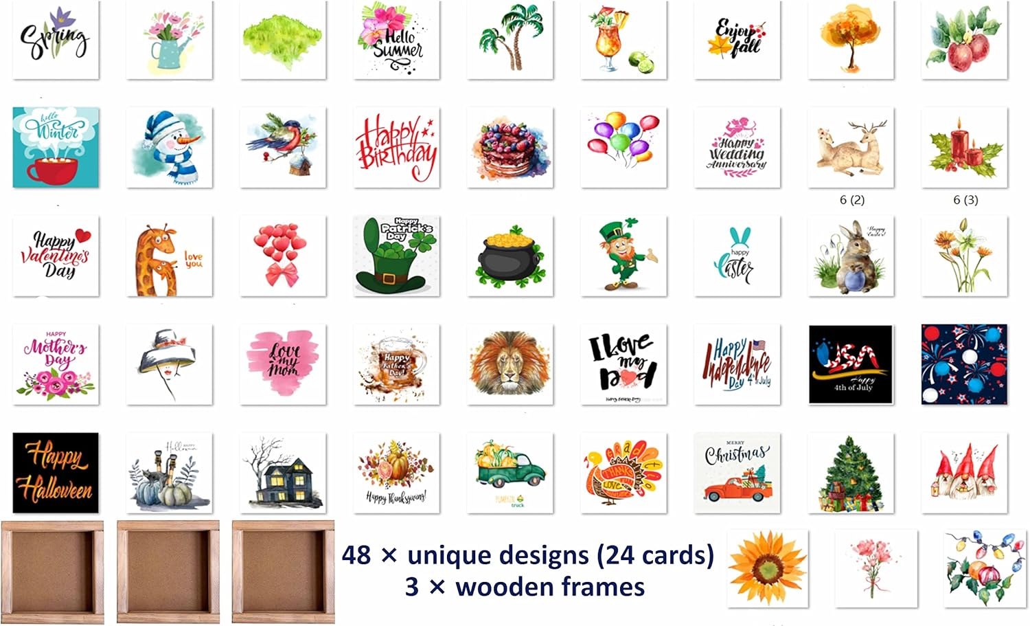 | Special Features | Interchangeable designs, High-quality cards, Rustic frames, Versatile decoration options |