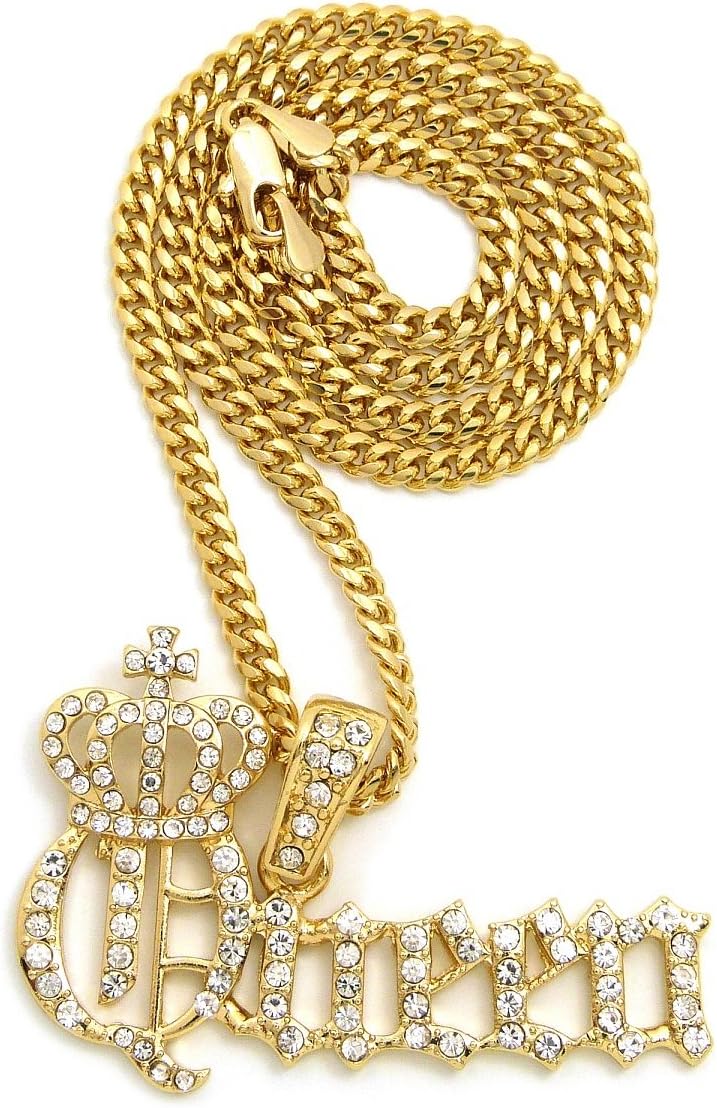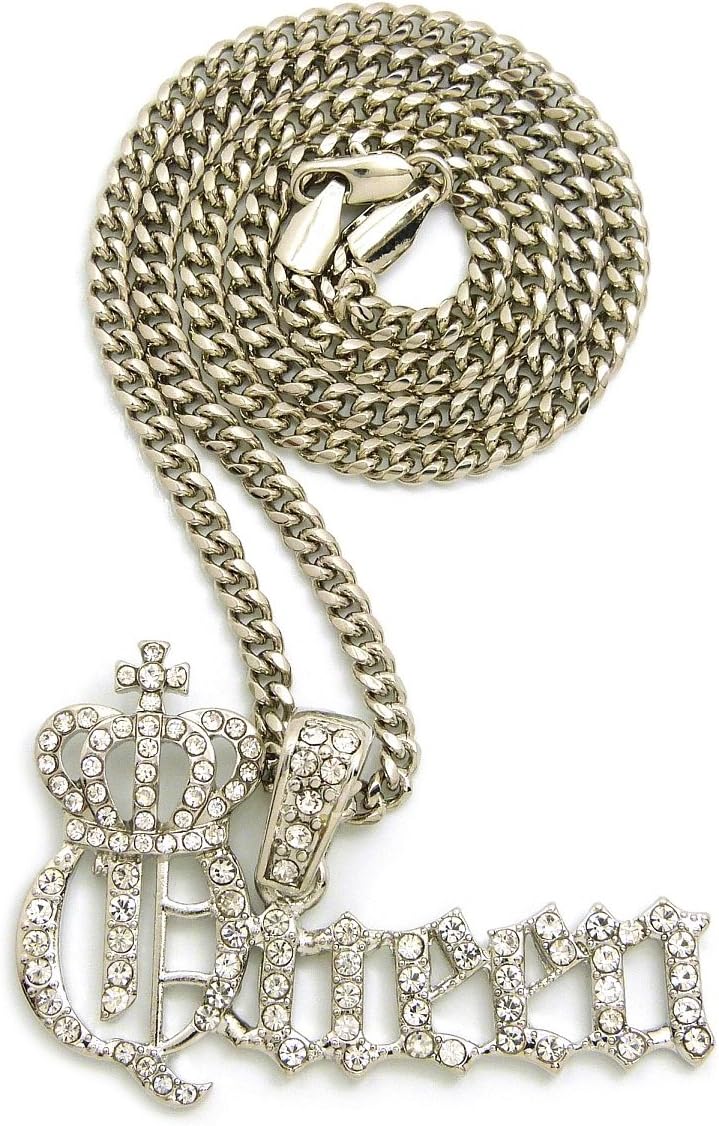 Women's Statement Rhinestone Filled Queen Pendant 18",20",24" Chain Necklace in Gold, Silver Tone