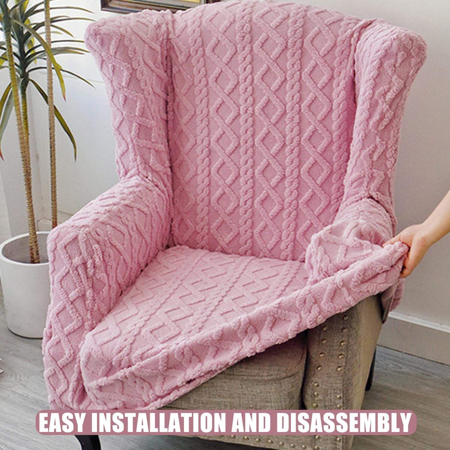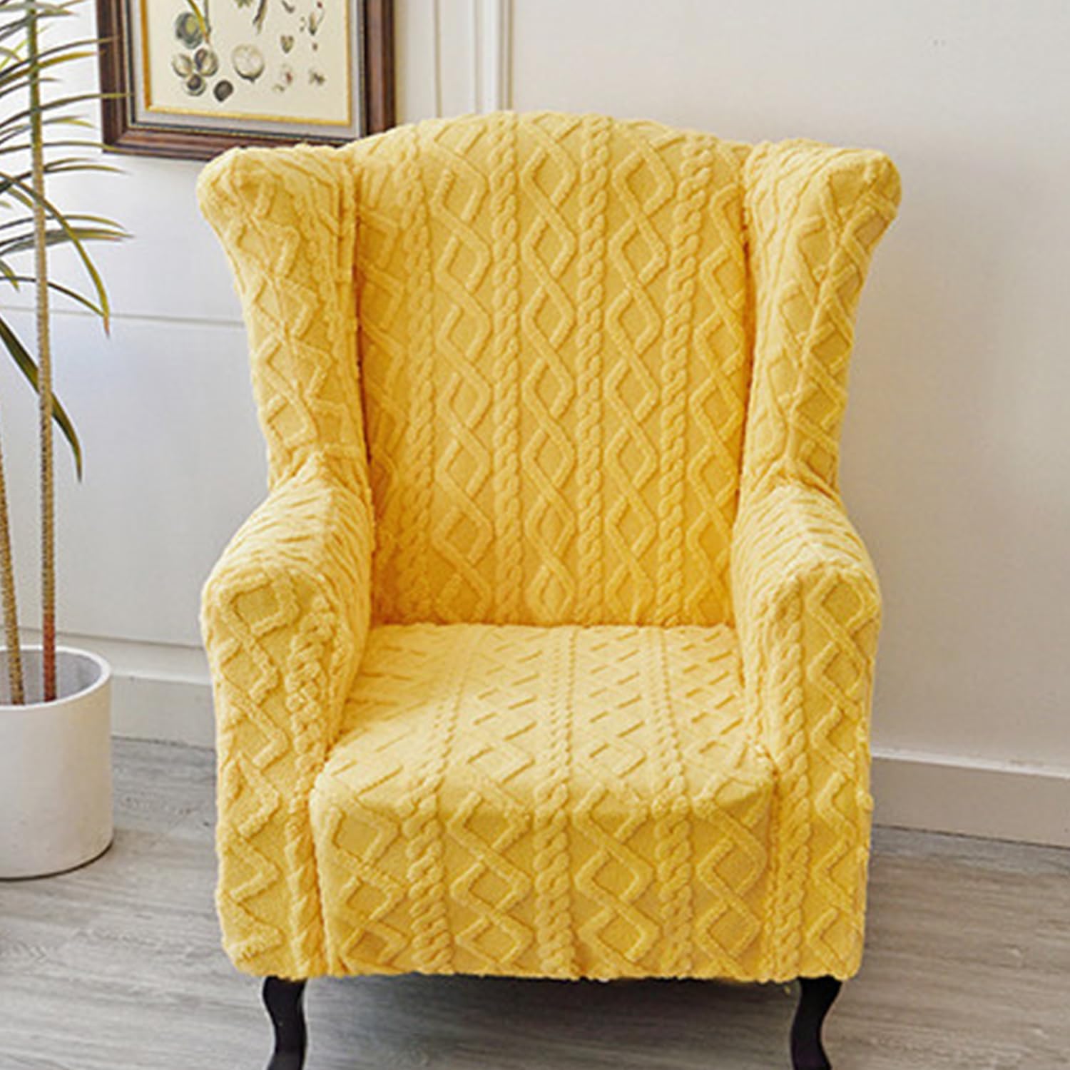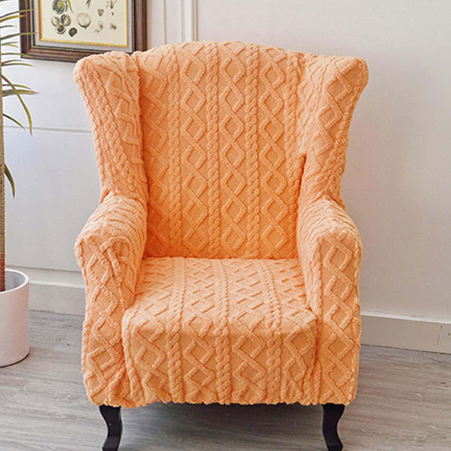 Wingback chair cover made of jacquard velvet fabricComfortable, soft and warm fabricVery suitable for using this wingback chair cover in winterNot only does it effectively prevent dustbut also it can also decorate your home spaceFabric:Jacquard velvet fabricFeatures: Soft and dustproofWhether it is foldable: portable and foldableSeason of use: all seasonsWhether it can be machine washed: Can be machine washedcolor:beige,orange,green,yellow,grey,pink,bluePackage includes:wingback chair cover*1(not including chair)Notes:Due to the light and screen setting difference, the item's color may be slightly different from the pictures.Please allow slight dimension difference due to different manual measurement.