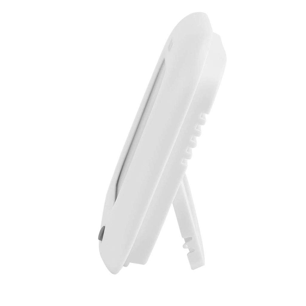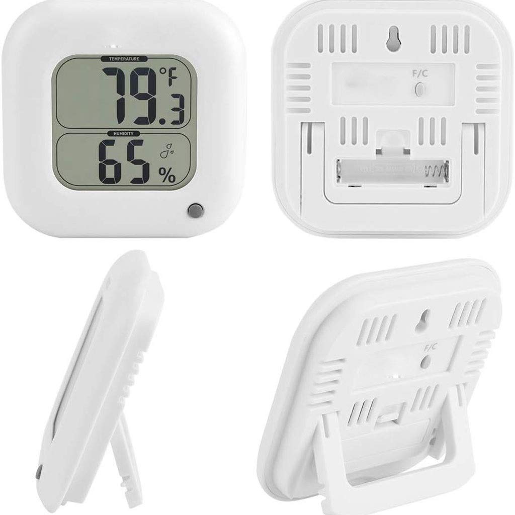 This digital thermometer is a small and cute item for each room. Measures relative humidity and temperature. Temperature can be displayed in in °C or °F by pressing the button on back. Clear digital data is big enough for easy reading. Wall mounted by the hanging hole on the back or free standing by the bracket. Specifications:Condition: and High QuailtyMaterial: Plastic ShellColor: WhiteBattery: 1*AAA Batteries(Not Included)Application: Indoor Size: Approx. 11 * 11cmPackage Included:1 * Temperature and Humidity Display MeterEasy to read from any angle and distance. Portable and lightweight, easy to carry.