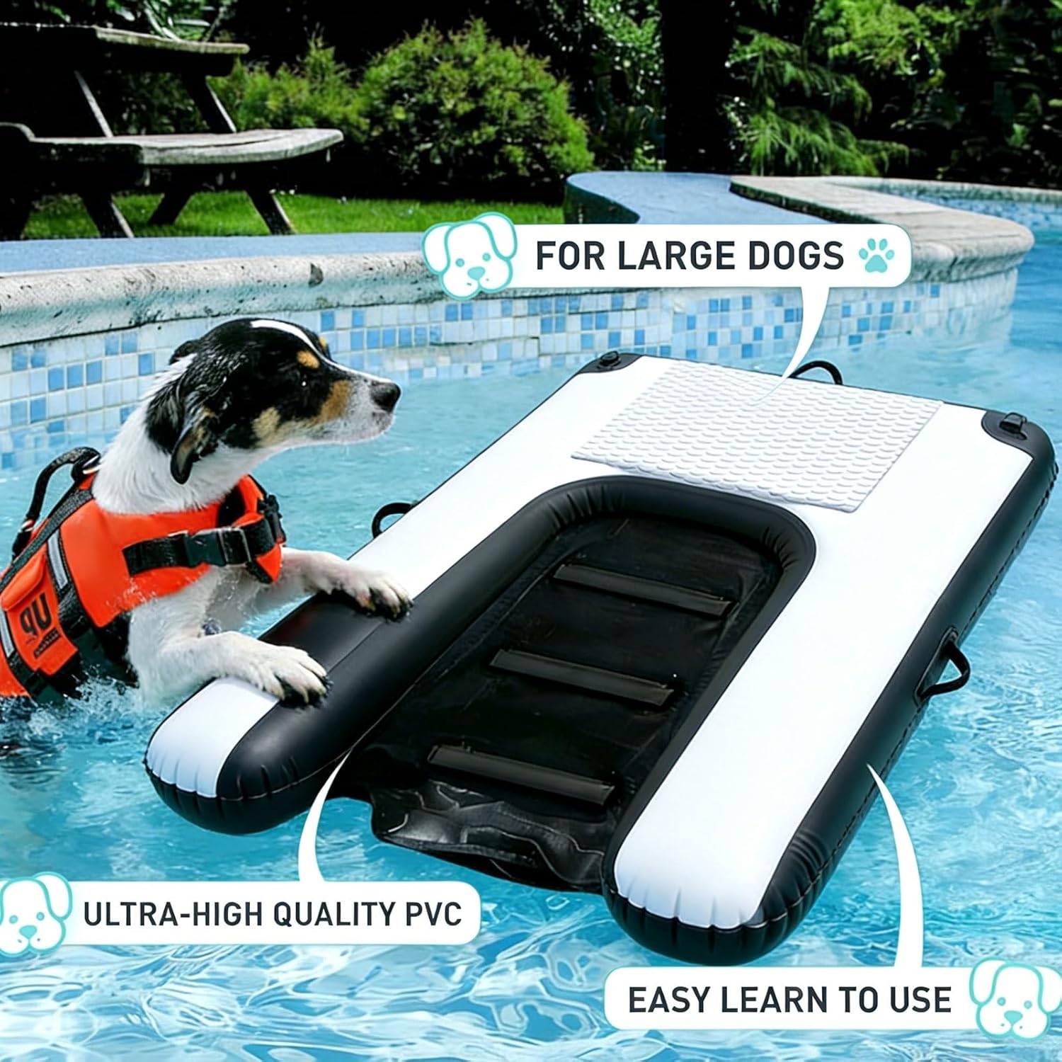 Let your beloved dog enjoy water fun with ease! Our inflatable dog water ramp is specifically designed for boats, featuring a puncture-resistant surface to ensure safety and durability. It is also perfect for use in swimming pools, lakes, and at the beach.Product Specifications:Name: Inflatable Dog Water RampMaterial: PVCDimensions: 150 x 100 x 10 cmColors: Black, Green, Blue, Yellow, RedPackage Contents:1x Inflatable Dog Water Ramp1xHand Pump1xStorage Bag1xRepair Kit1xRope1xInstruction ManualImportant Notes:Due to manual measurement, please allow for a size discrepancy of 1–3 cm.Due to lighting conditions during photography and variations in monitor settings, the actual color of the product may differ slightly from the images shown; please refer to the physical product received.