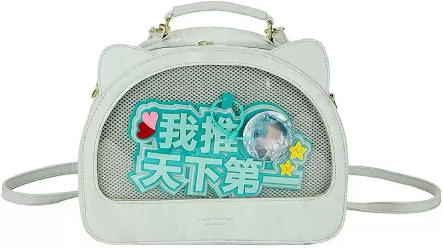 Express your style with this charming Ita display crossbody bag featuring a transparent mesh window perfect for showcasing your favorite pins and collections. The spacious design offers ample room for daily essentials while maintaining a sleek, fashionable silhouette. Available in six stunning colors - black, white, green, pink, blue, and silver - this versatile bag seamlessly combines functionality with kawaii aesthetics. The durable construction includes high-quality hardware accents and adjustable straps for comfortable carrying. The clear display window lets you create and customize your own unique look by arranging pins, badges, or small collectibles. Whether headed to conventions, meetups, or daily outings, this crossbody bag offers both practical storage and a creative way to display your personality. The large main compartment keeps your belongings organized while the eye-catching design makes a perfect fashion statement for collectors and style enthusiasts alike.