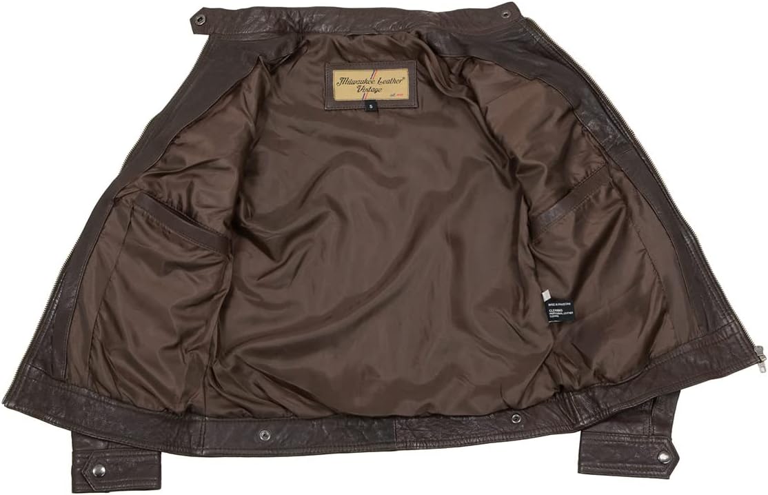 Milwaukee Leather Vintage SFL2811 Women's Cognac Leather Zipper Front Fashion Jacket Outside FeaturesMade of 1.0-1.1mm Sheep Veg Tan LeatherZipper Front Closure1.5” Banded Snap Over Collar2 Outside Hand Pockets with Zipper Closure1 Chest Pocket with Zipper ClosureSnap Close Wrist CuffsLower Back Snaps for Comfort and Expansion When NeededGenuine YKK Zippers - Known for Longevity and DurabilityInside Features2 Inside Leather Trimmed Drop PocketsBuilt Inside Hanging LoopFully LinedMilwaukee Leather - Once You Have It, You Love It!