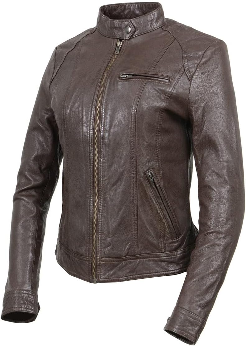 | Style | Sfl2811 Women's Brown Leather Zipper Front Jacket |