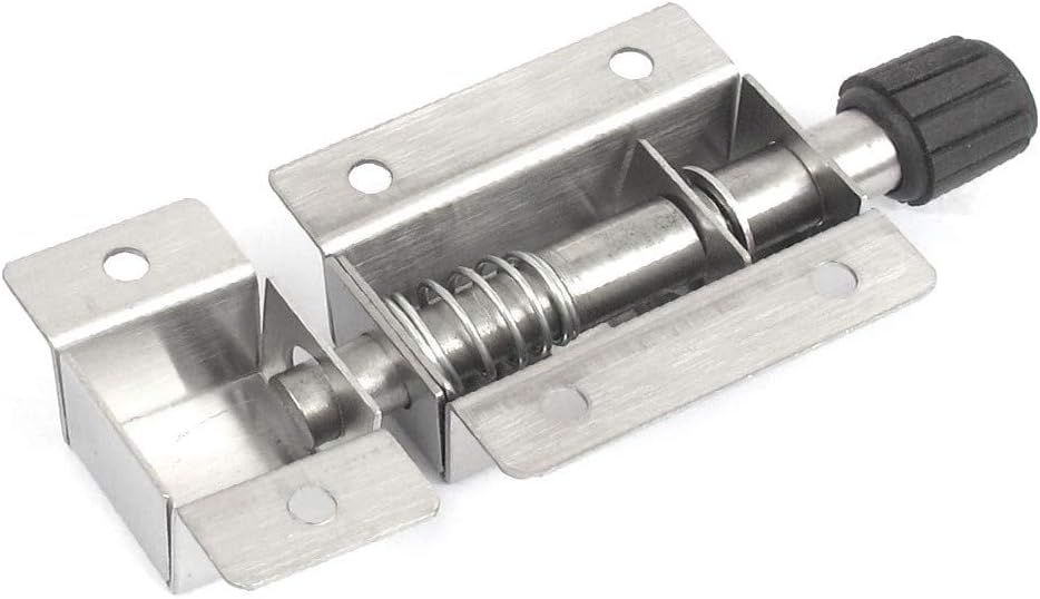 Silver tone stainless steel automatic door bolt, spring workmanship loaded, black push button, easy recommended installation.High quality door bolt provides enhanced security for doors, gates and windows.Wonderful replacement for replacing your old or damaged one.