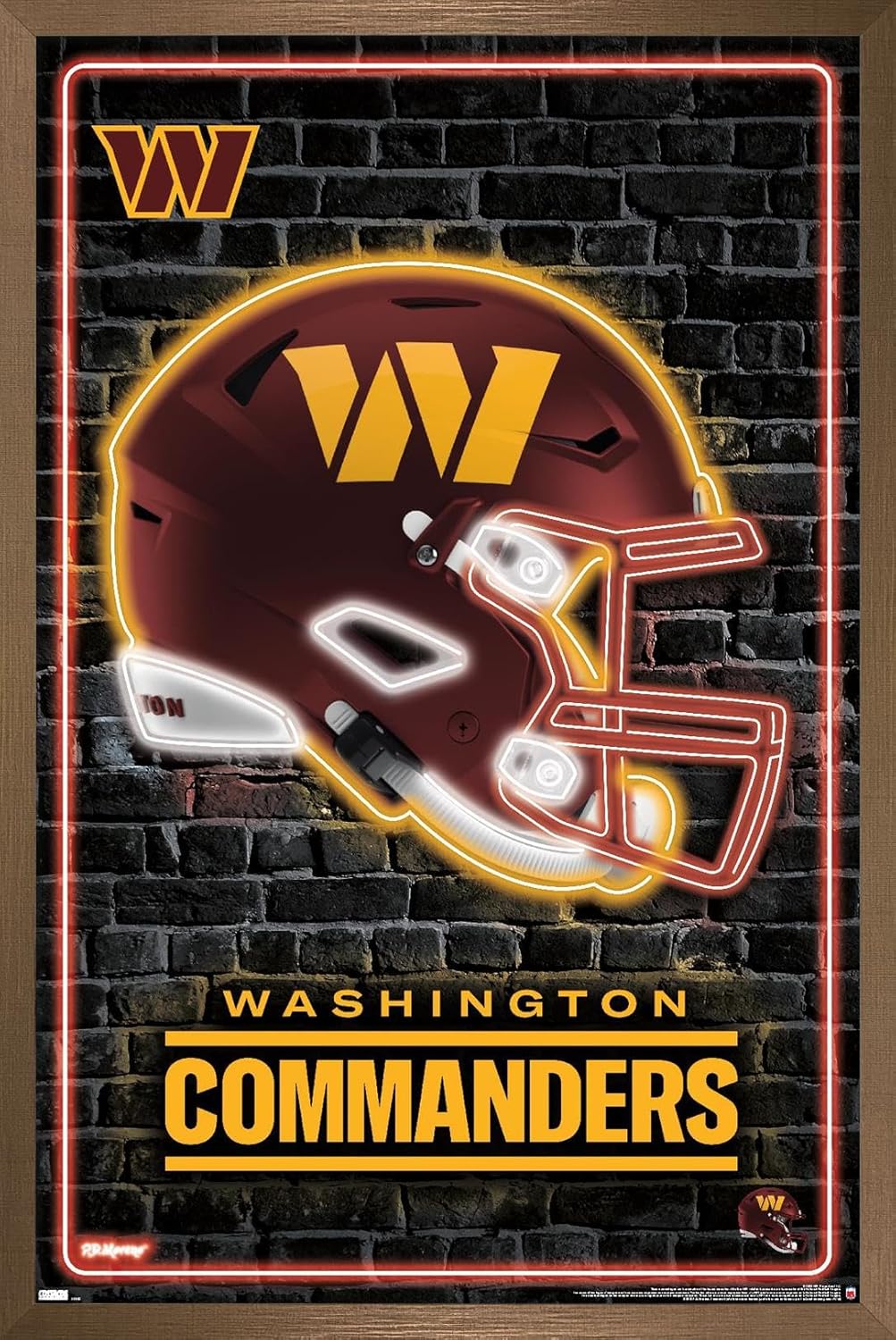 Trends International framed posters are everyone's favorite room decor! The clean, modern design and premium satin finish of this NFL Washington Commanders - Neon Helmet 23 Wall Poster will make a bold wall decor statement in any room. Decorate the bedroom, bathroom, kid's room, living room, office, dorm, and more! Our framed posters are lightweight and easy to hang using the sawtooth hanger so you'll be able to enjoy it in no time. Every one of our framed posters are proudly Made in the USA. Add these decorations alongside the other accessories on your party supplies list too! Trends International's wall posters are the perfect way to dress up your parties. A framed poster makes a great gift as well! Whether it's for a birthday, Christmas, house warming or for your best friend, they'll love receiving a framed poster to show off their style.
