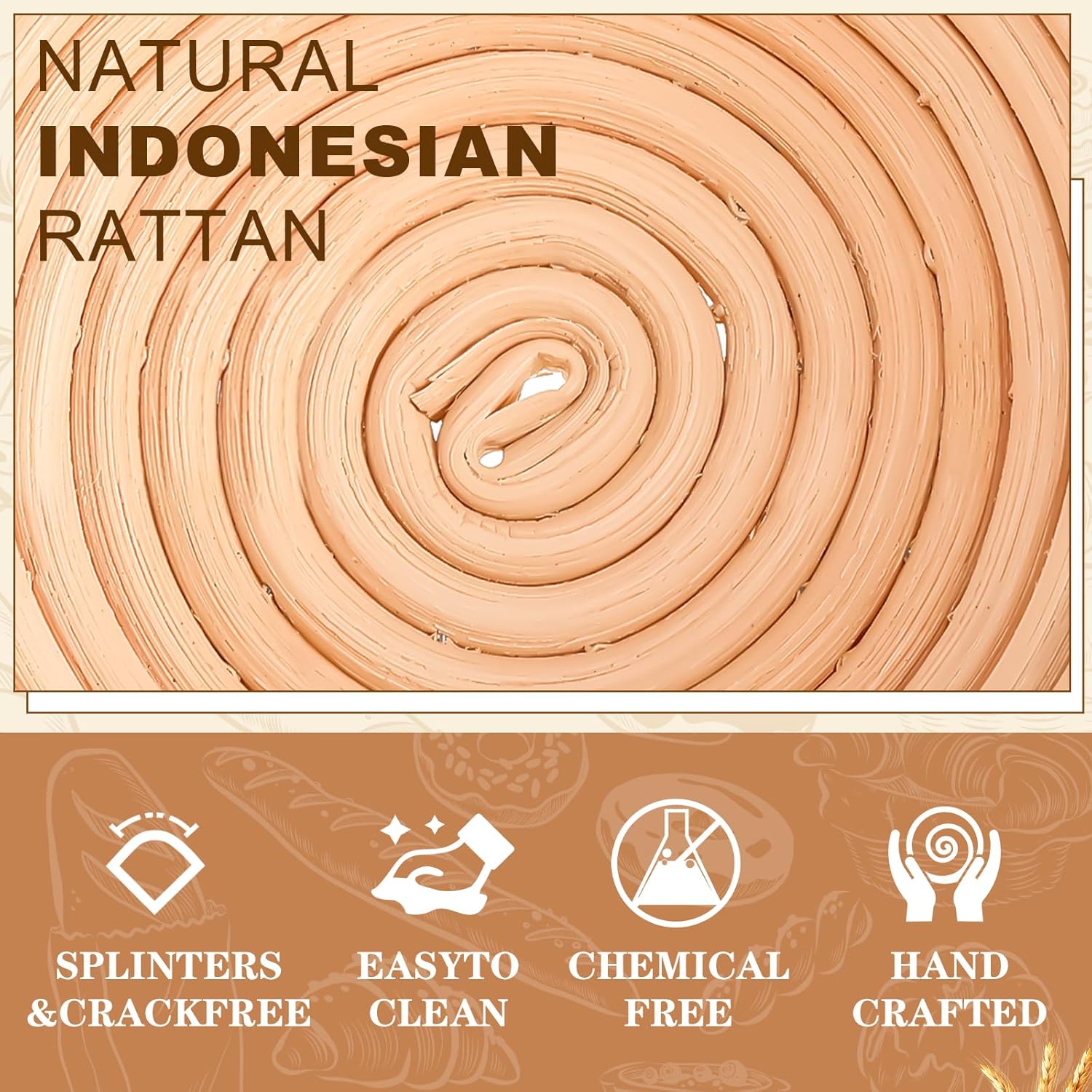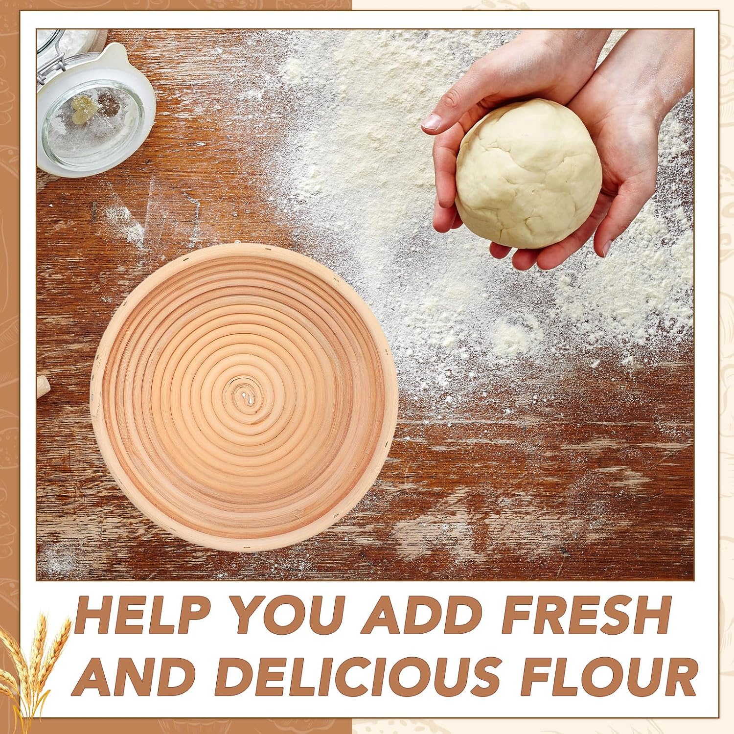 Features: Washable linen lining: Each of our baskets comes with a well made cloth liner, and you can decide whether to use it to keep the dough from sticking to the basket, or use the bare banneton baskets to enhance the visuals of homemade bread. Circular design: This round basket is made of rattan, and the dome extends smoothly to the bottom of the basket, shaping your bread into an ideal shape, simple and elegant, convenient and easy to use. Specifications: Material: rattan, line cloth, plasticColor: beigeSize: about 9 inches in diameterPackage includes: 10 x Proofing baskets for bread baking10 x Line cloth liners10 x Plastic scrapersNotes: Manual measurement, please allow slight errors on size. The color may exist a slight difference due to different screen displays.