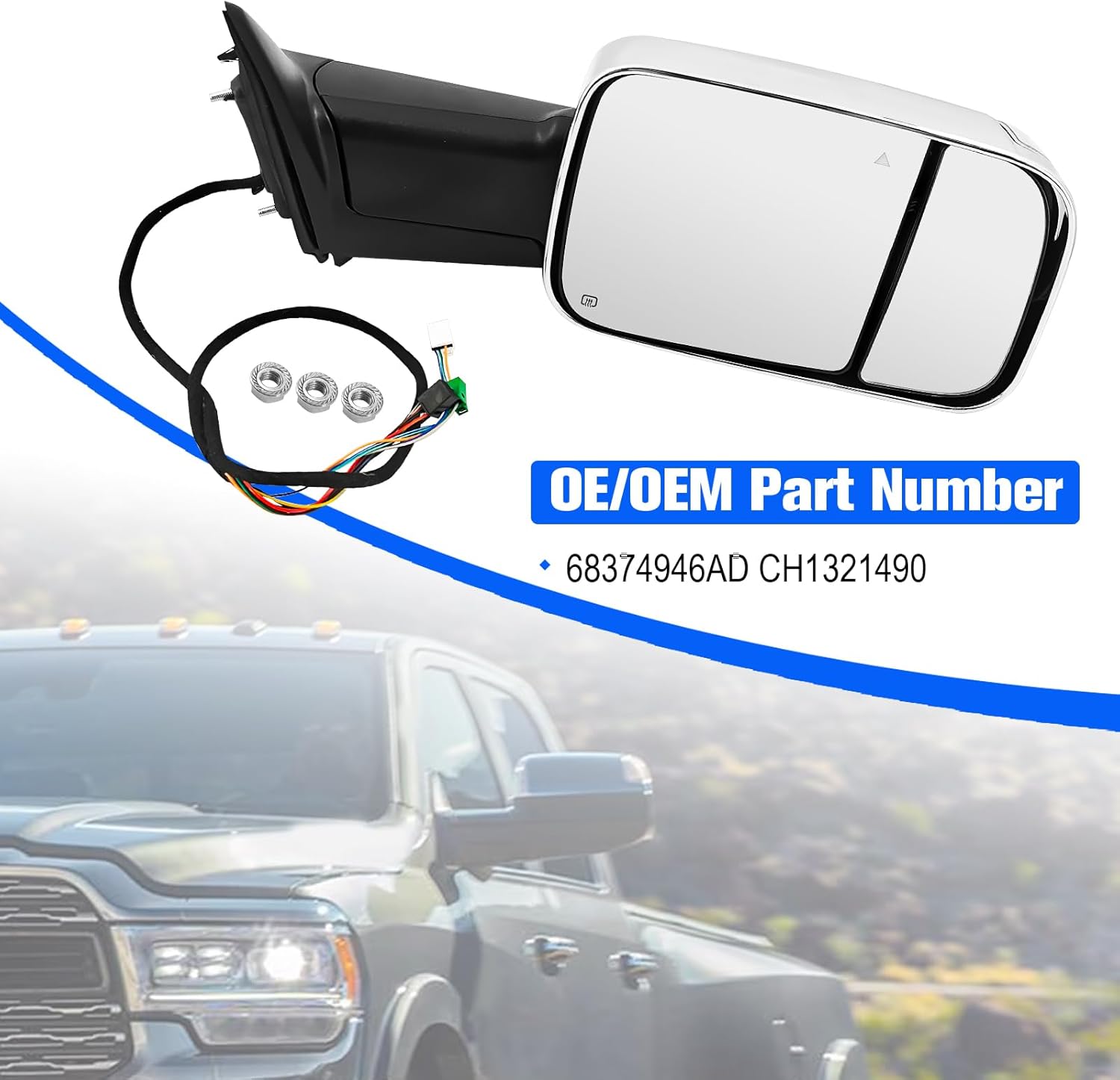 | Included Components | 1 x Right Passenger Side Tow Mirror Chrome Fits for Ram 2500 3500 2019-2022 |