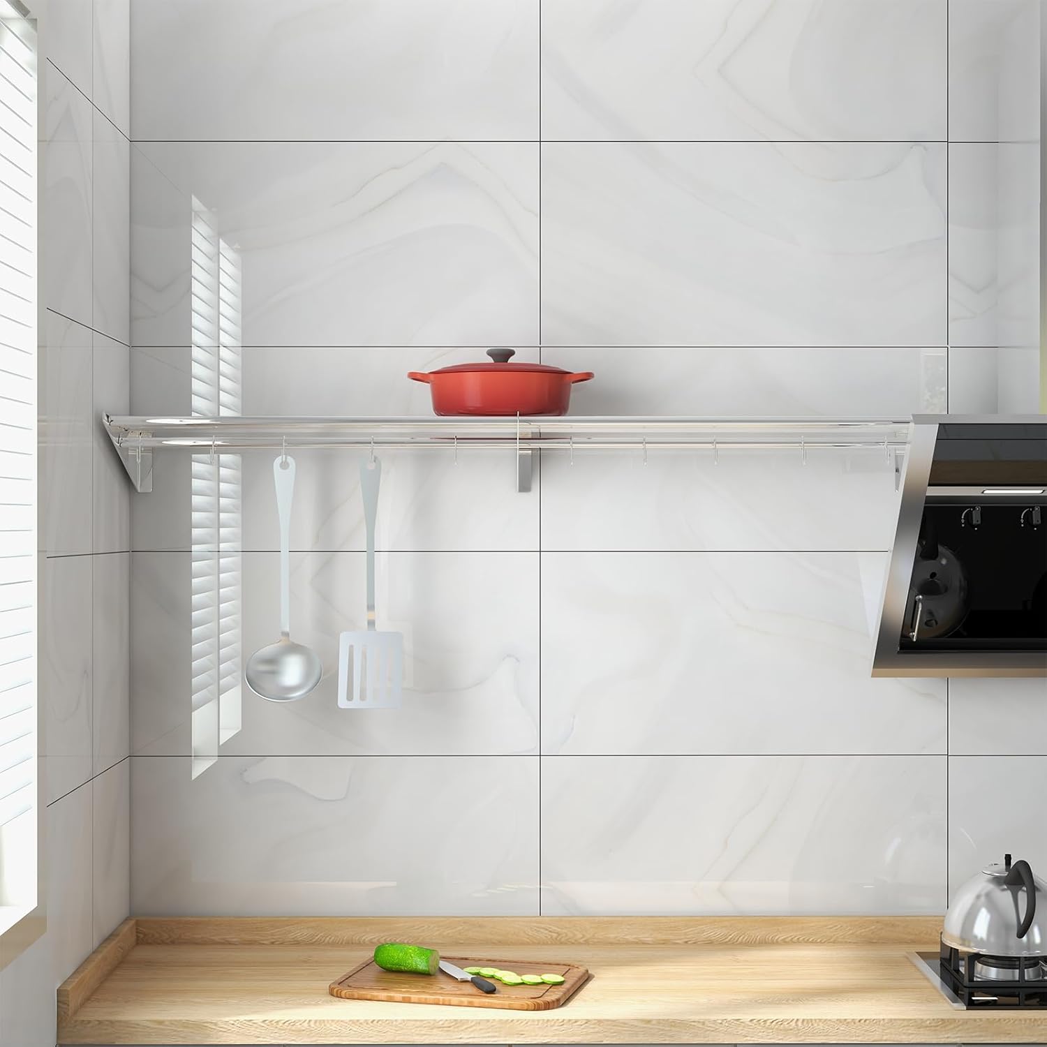 Product Description:Product model: 12" x 24"; 12" x 36"; 12" x 48"Installation type: Wall-mountedDoes it require assembly: YesColor: silverMaterial: stainless steel, alloy steel, metalRoom type: KitchenItem weight: 6.98 lbs.Number of shelves: 1Included components: Hardware