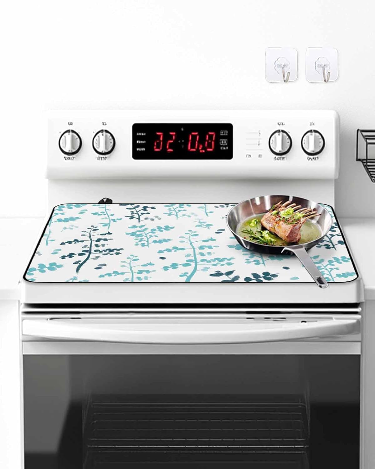 Stove Top Covers combine practicality and beauty, adding more color to your kitchen decorations.Product DescriptionMaterial: 100% Polyester cloth fabric surface with natural rubber backingSize Chart: 28.5x20.5 Inch / 24x21 Inch / 31x24 Inch / 36x21 InchExquisite WorkmanshipThe top is a layer of high-quality 100% Polyester and the bottom is rubber, which is waterproof, non slip, foldable and reusable. Will not move around when you prepare food on it.Counter Top ProtectorProtects electric, glass, or ceramic stovetop from scratches, scrapes, glass cracks, dirt & spills.Versatile UsesThe mat can be used as a stove top cover, counter top mat, ironing mat, washer top cover, coffee mat, flat top oven cover, dryer top cover, oven cover, refrigerator top cover, extra large rubber mat.Extra Counter SpaceThis stovetop cover is a one-stop solution for your many uses. It provides more worktop space for anything from food preparation to ironing. Therefore, this cooktop cover mat is perfect for kitchens with limited space.Ideal GiftThe exquisite pattern design makes the stove cover a perfect gift given to family friends and lovers. It adds color to your kitchen docor.Foldable and Easy StorageOur stove cover can be folded or rolled up and put away in your cabinet or cupboard when not in use.Special NoteNote: The mat may have creases from folding during shipping. This will smooth out in a couple of days.The colors may have slight differences due to different screens.