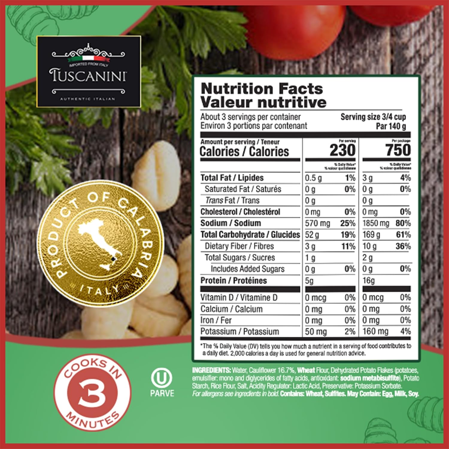 Delicous and authenic Italian Dinner taste from the comfort of your own home. This flavorful cauliflower and potato gnocchi will have your loved ones and guests asking for more. East to prepare, just boil in slightely salted water for 2-3 minutes and voila, a quick and easy yet totally delicious meal that is ready to eat in minutes. You can even boil it in your soup.