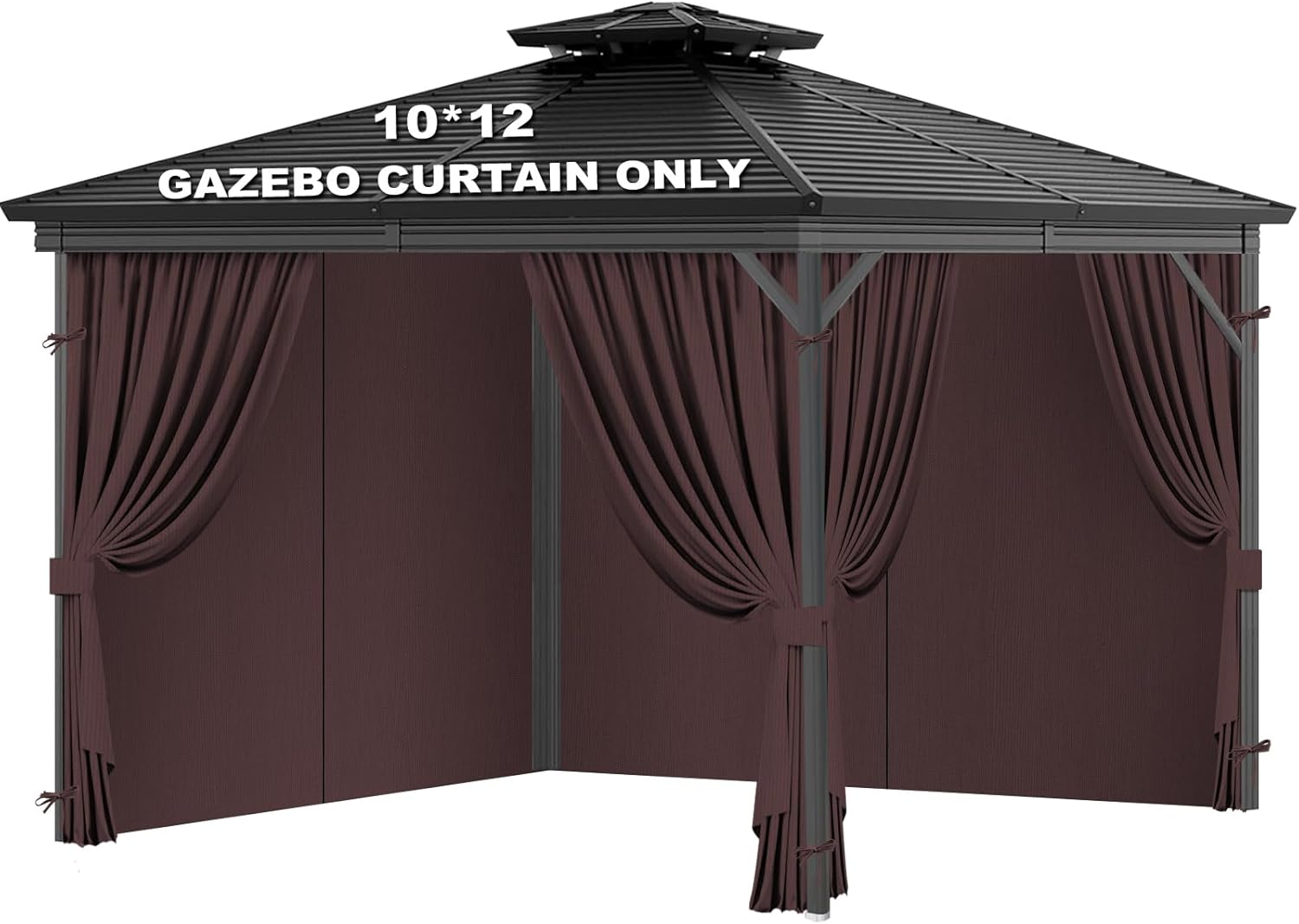 VivaPeak 10'x12' Pavilion Universal Replacement Privacy is crafted from premium materials, offering exceptional waterproofing and UV protection. This product includes four replacement privacy curtains for gazebos, along with two types of hooks suitable for different metal frames. Compatible only with 10'x12' gazebos.Installation Instructions: The replacement canopy features a four-panel design with zippers positioned centrally on each side of the gazebo. The side panels are installed on the interior of the gazebo. We have adjusted the strap locations based on the gazebo's structure. The fabric on the 12-foot side will be slightly longer. Please take note to avoid incorrect installation. If you have any questions, feel free to reach out for assistance.